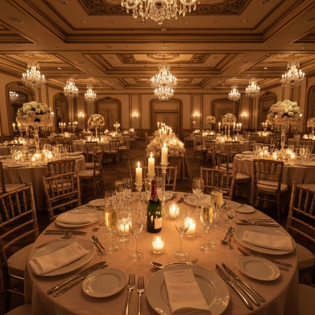 Sophisticated reception setup with premium finishes and elegant ambiance